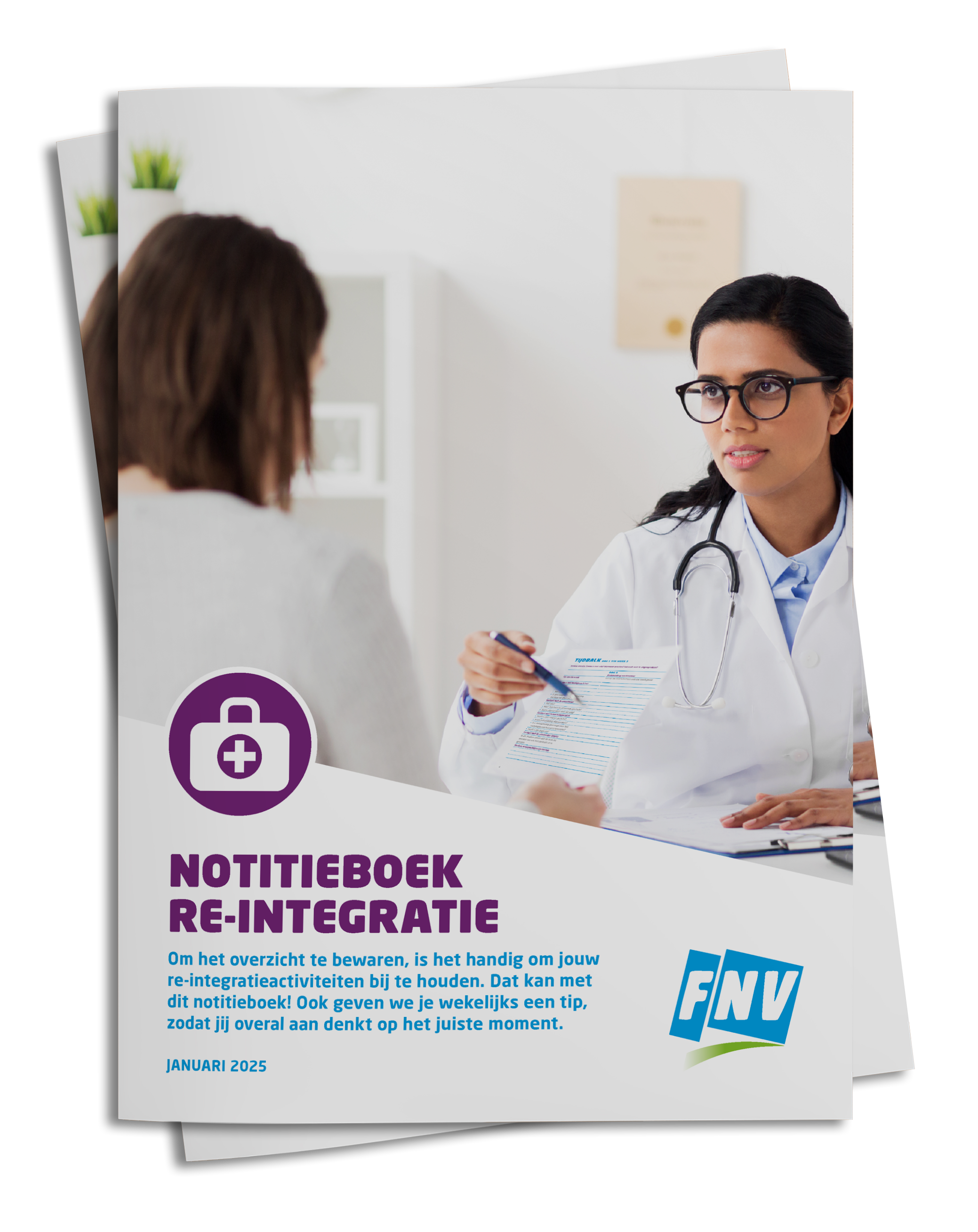 In een re-integratietraject zitten meerdere evaluatiemomenten. Ook zijn jij en jouw werkgever verplicht om mee te werken aan je re-integratie en de afspraken die jullie daarover maken. Het kan dus handig zijn als jij per week noteert wat je allemaal hebt gedaan. Dit doe je eenvoudig met dit notitieboek re-integratie.