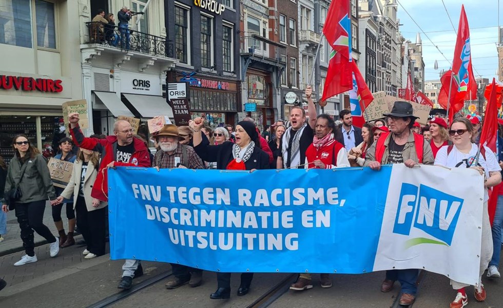 Het is daarom dat de FNV zich uitspreekt tegen onrecht dat zich ver van onze landsgrenzen afspeelt: de maar voortdurende genocide in Gaza met de terreurdaden tegen de Palestijnen, tegen de oorlog die imperialistisch Rusland in Oekraïne voert. Tegen de gewettigde vrouwenhaat ver weg in Iran en Afghanistan. Tegen regimes waar vakbonden verboden zijn. En het is daarom dat de FNV met vele internationale zusterorganisaties samenwerkt.