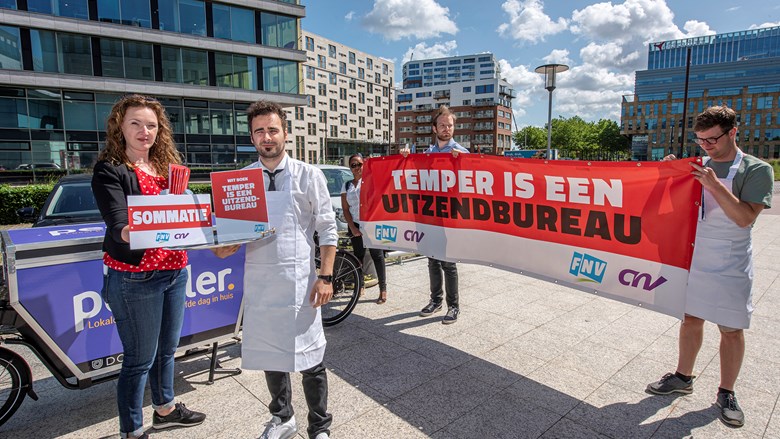Anja Dijkman, bestuurder FNV Flex: ‘Door procedures te voeren die afleiden van de hoofdvraag: zijn Temperaars uitzendkrachten of zelfstandigen, probeert Temper haar verdienmodel zo lang mogelijk overeind te houden. Wij winnen keer op keer onze rechtszaken tegen platformbedrijven. Maar deze bedrijven zijn hondsbrutaal en houden zich welbewust niet aan de wet om marktaandeel te veroveren met goedkoper gemaakte arbeid.’
